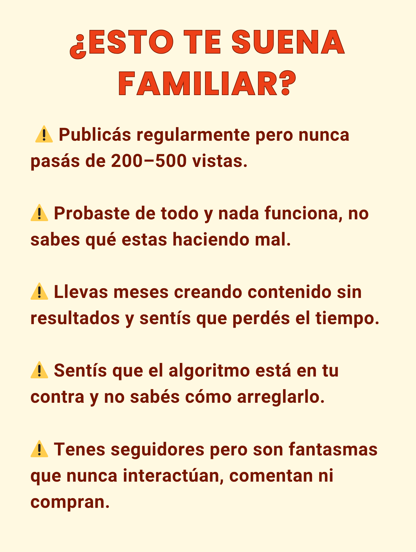 Creadores, coaches, freelancers y marcas personales que quieren mejorar su contenido, conectar con su audiencia y dejar de depender de la suerte o la viralidad.
